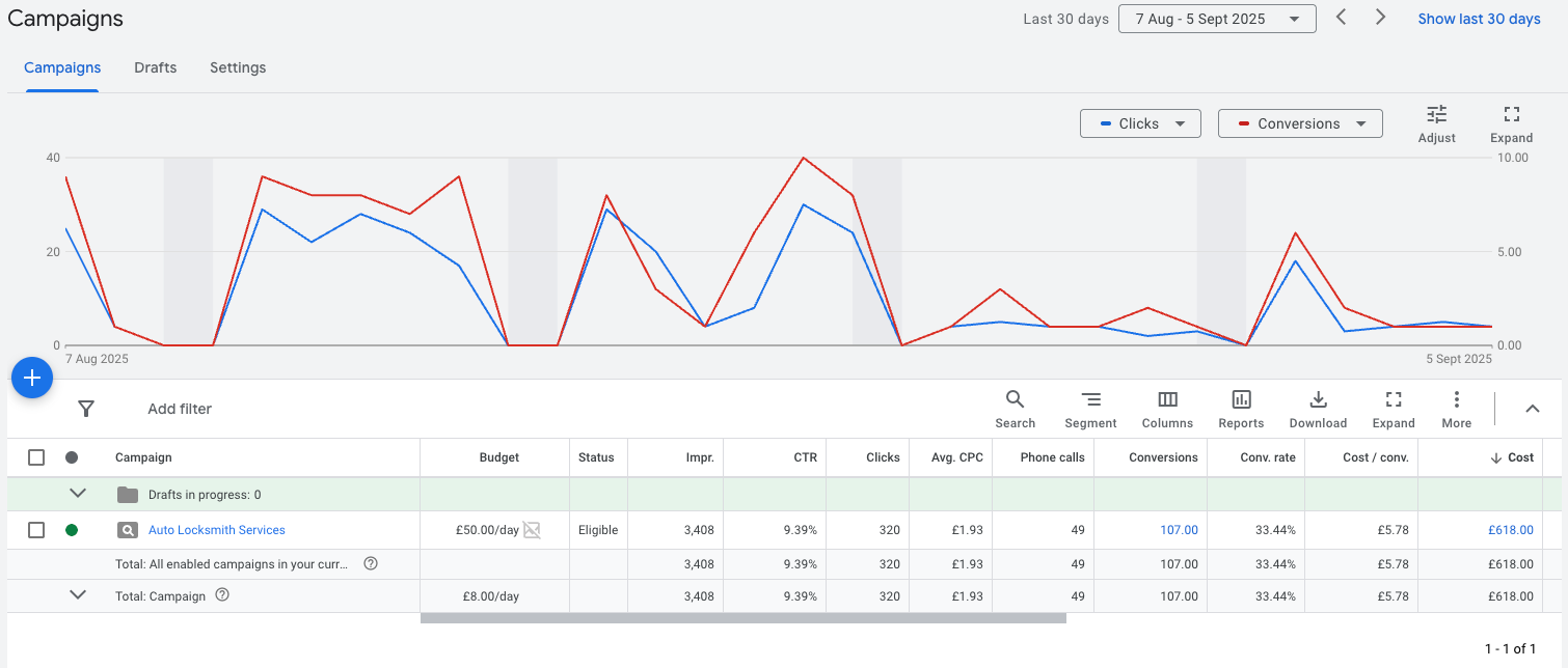 Our client was looking for consistent way to generate quality leads for their auto locksmith business based in the Midlands, UK